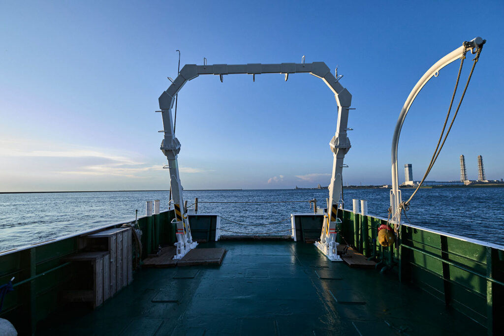 弊社所有の海洋調査船兼交通船「ゆめとび」は500㎏吊Aフレームをはじめ充実した装備を備えており、海洋調査や機器開発テスト、警戒船業務など様々な作業で活躍しています。